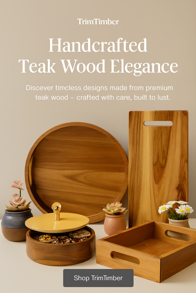 Golden Teak Masala Box – Preserve Your Spices in Elegance This Masala Box Gives Your Kitchen Premium And Luxurious Looks. SHOP NOW Golden Teak Wood Round Tray – Elegant & Functional This Golden Teak Wood Round Tray Feels Proud In Front Of Your Guest and Relatives. SHOP NOW Golden Teak Rectangular Tray – Elegance Meets Functionality. This Golden Teak Wood Tray Feels You Luxurious Among Relatives and Guests. SHOP NOW Golden Teak Chopping Board crafted for the art of cooking This Golden Teak Wood Chopping Board Give You Freedom To Chop veggies without Running Out Of Space This 19 Inch Long And 9 inch thick monster give You Better Experiance. SHOP NOW